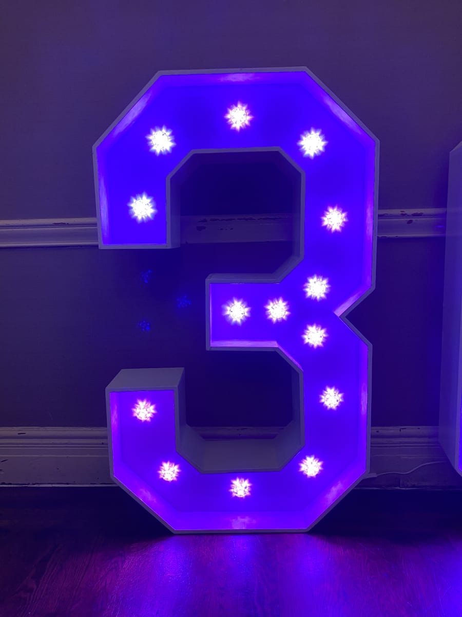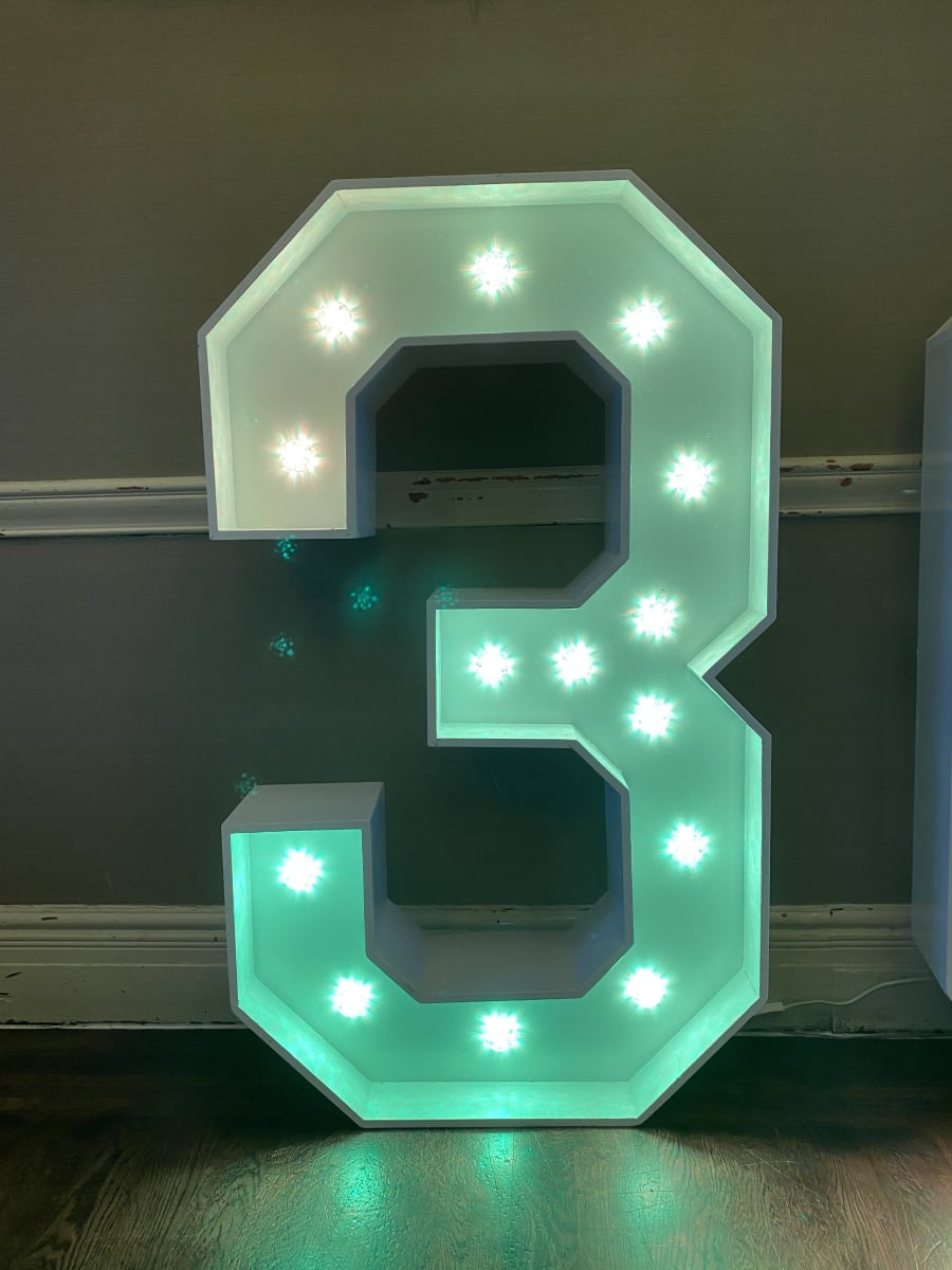 Make a statement at your event with our Light up Number 3 and create a visually stunning display that will leave a lasting impression on your guests. Available for delivery in Manchester and the North West, bring the wow factor to your next celebration with this eye-catching decor piece.
